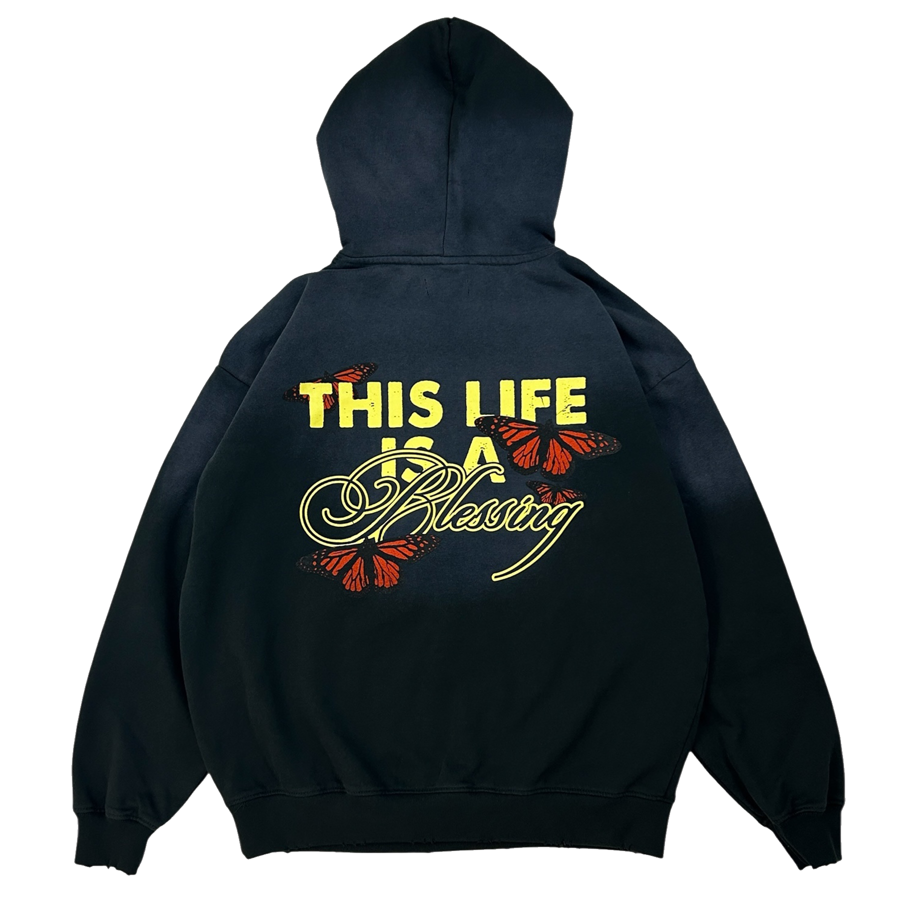 'THIS LIFE IS A BLESSING' VINTAGE BLACK HOODIE